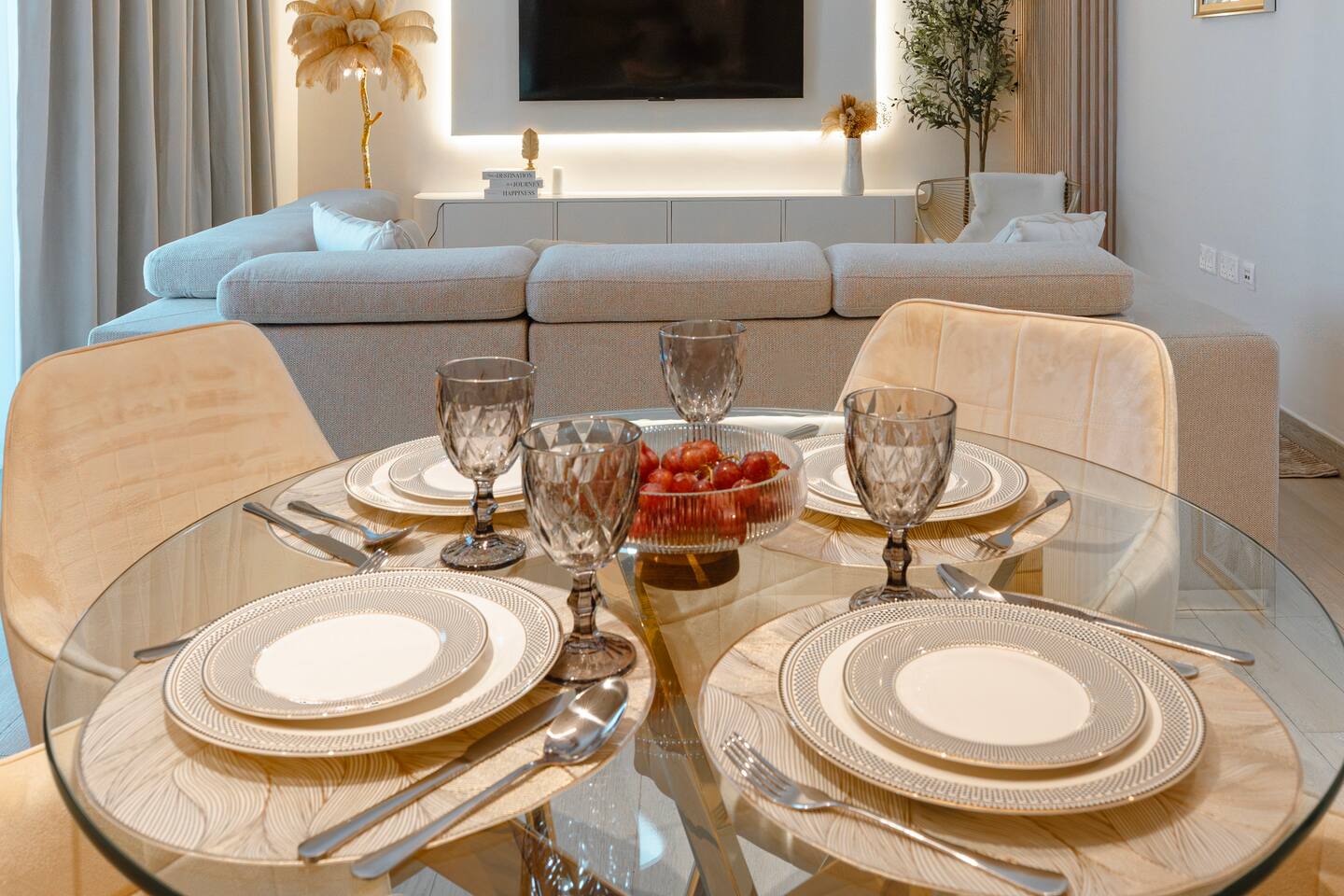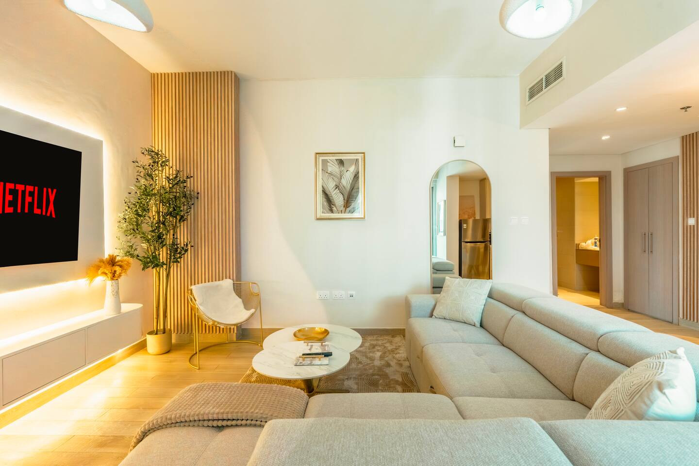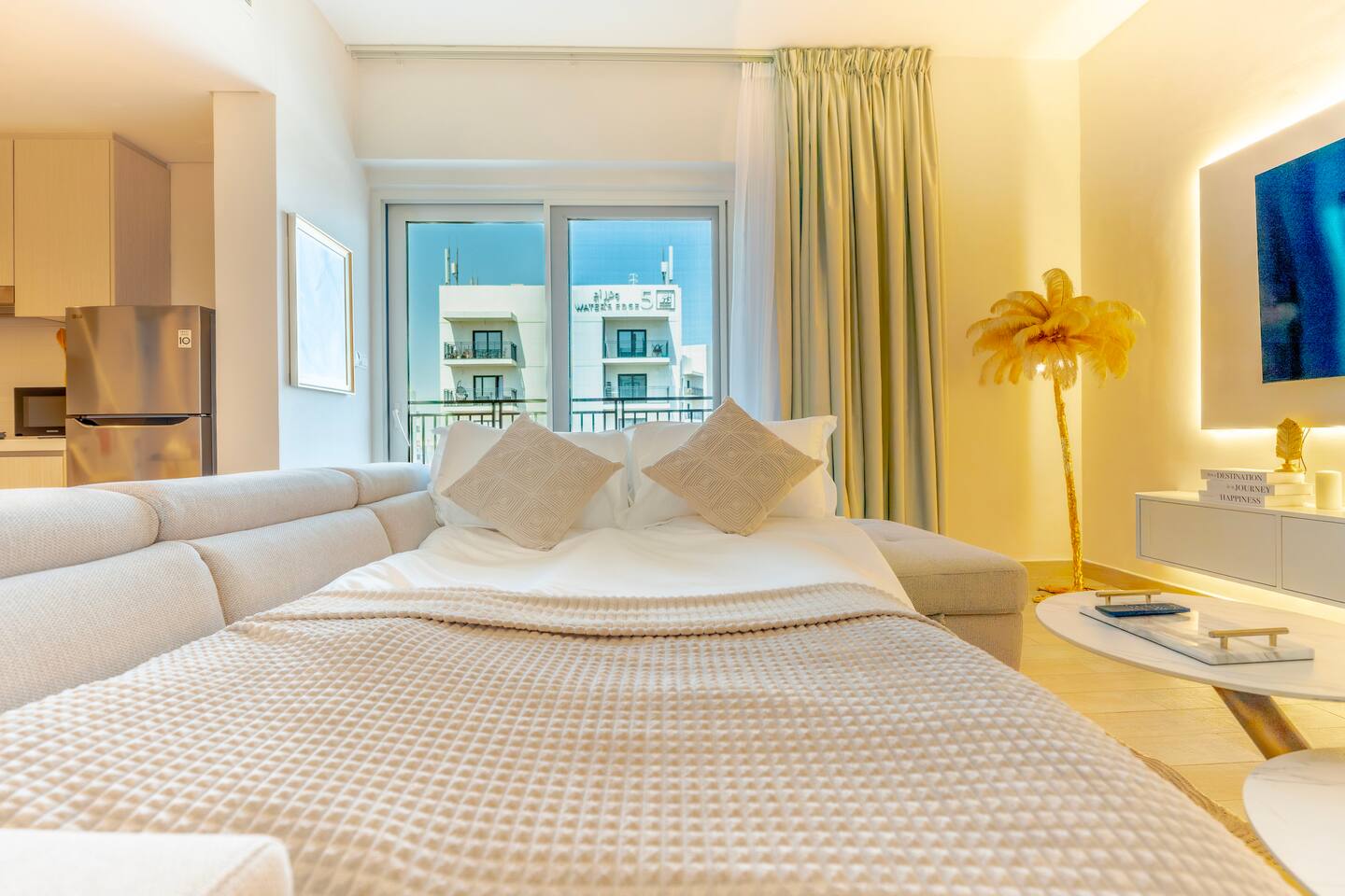 Welcome to Pearls Collection - your home away from home. Stay in the heart of Yas Island at this modern 1-bedroom NEW apartment in the prestigious community. The Space Bright living room with smart TV Fully equipped kitchen Cozy bedroom with a king bed Private balcony High-speed Wi-Fi Access to the pool and gym Location Highlights - minutes away: Formula 1 Ferrari World Yas Waterworld Yas Mall Yas Beach SeaWorld Abu Dhabi Yas Links Golf Course Free underground parking